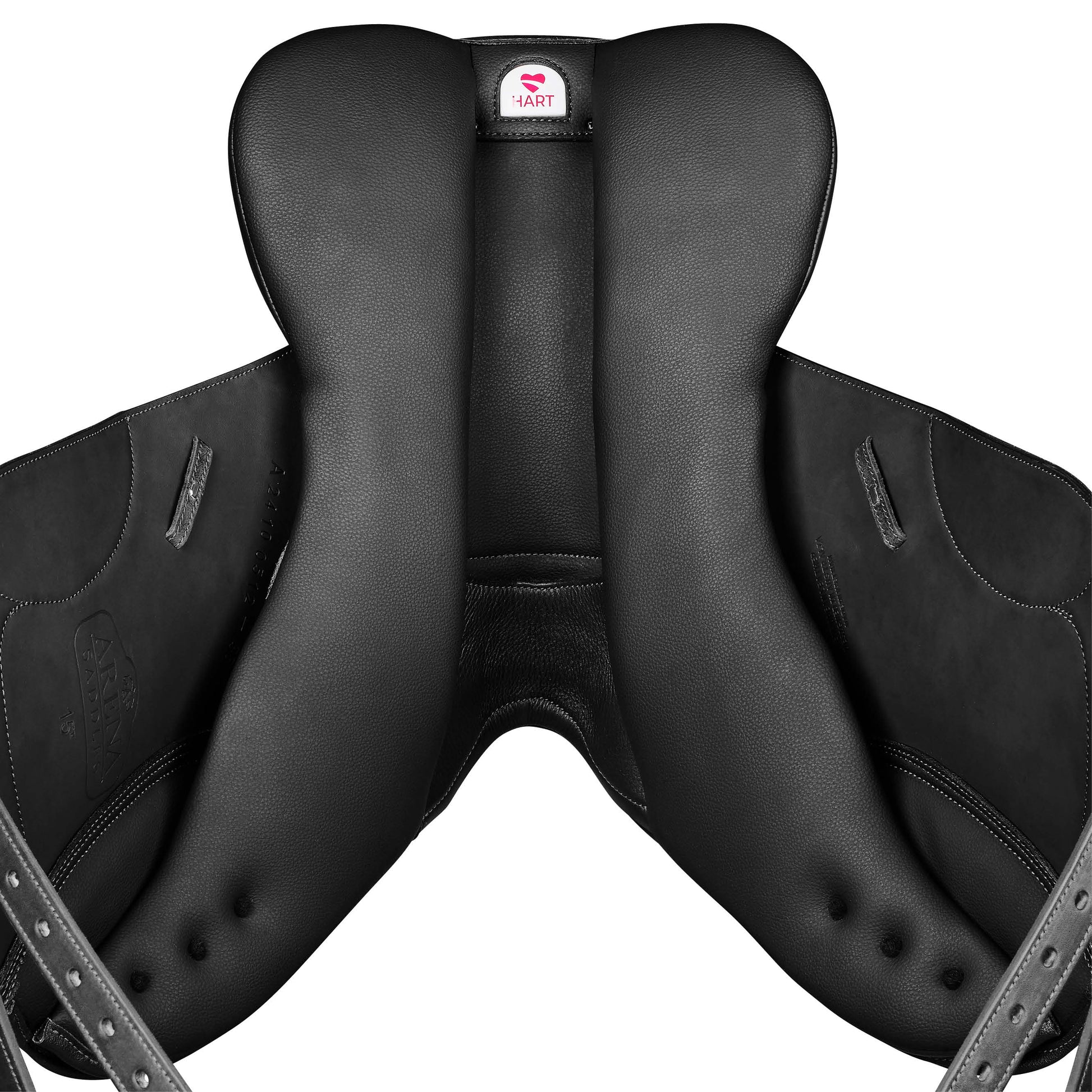 Siiven ulkopuoliset polvi- ja pohjetuet tukevat istuntaasi lisäten vakautta ja varmuutta – tehden tästä satulasta täydellisen niin kouluratsastukseen kuin maastoradallekin.