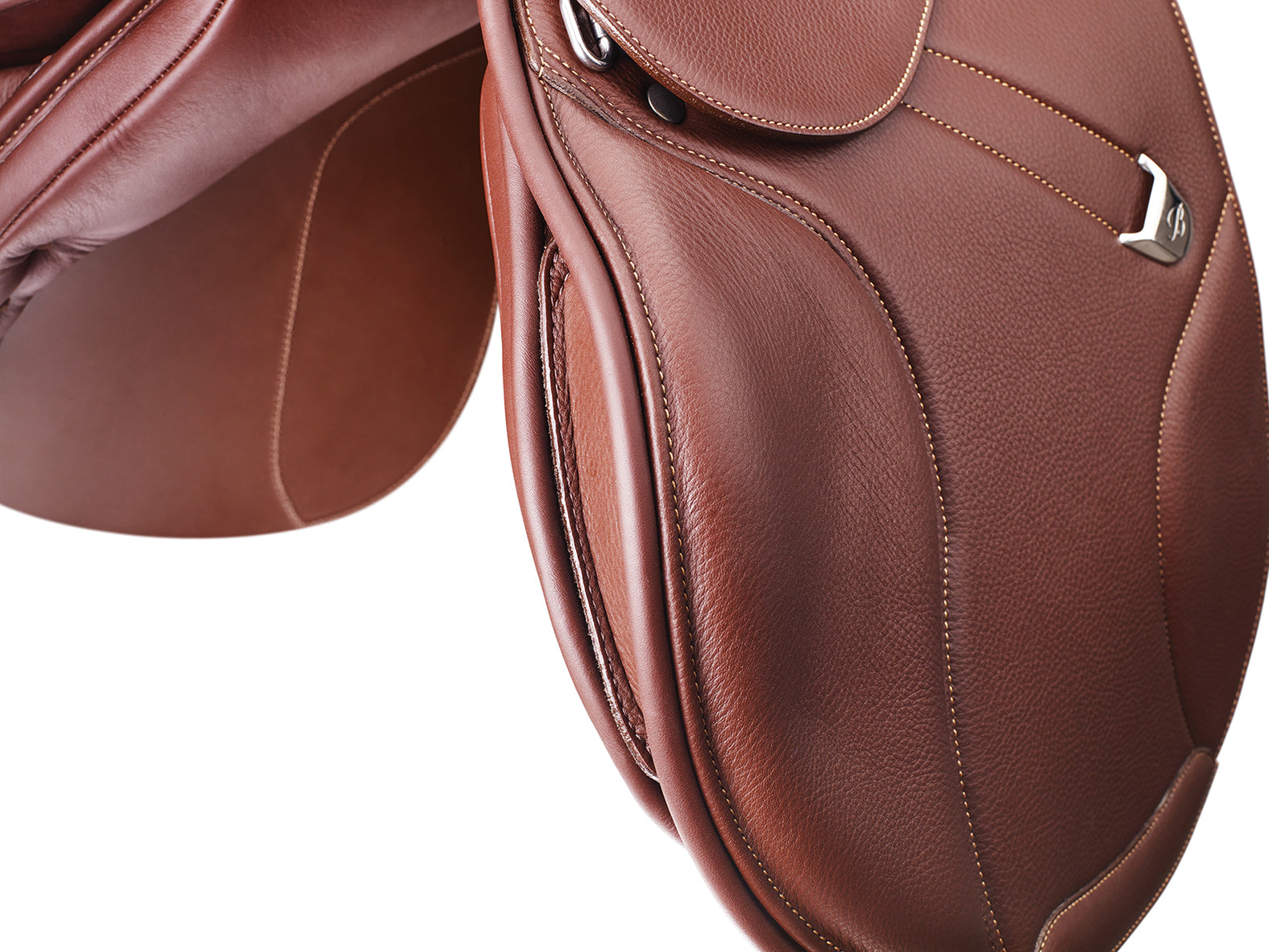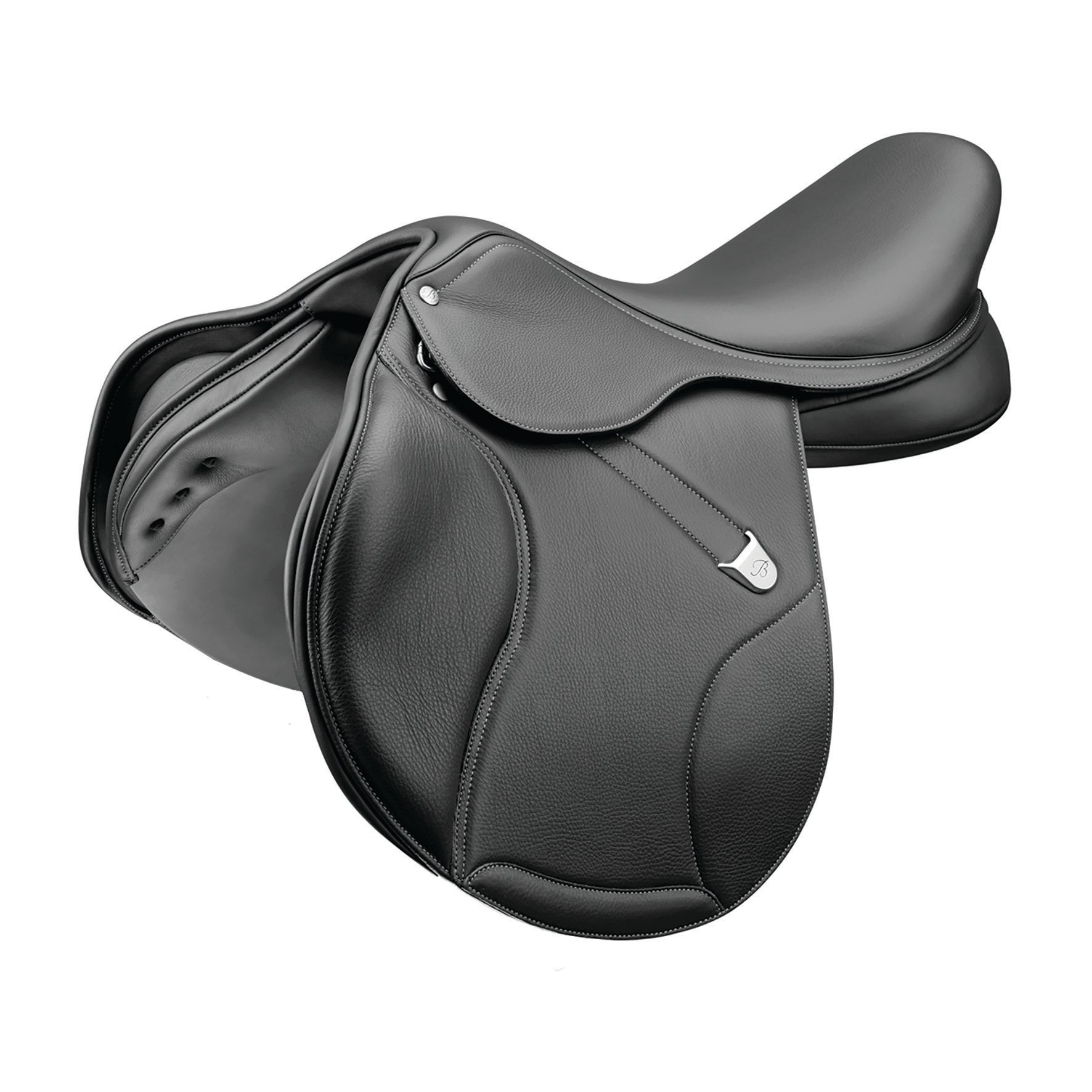 Bates Elevation+ estesatula syvällä istuimella. Satula on saatavilla vahvalla Opulence-tuplanahalla tai grippaavalla Luxe leather vasikannahalla.