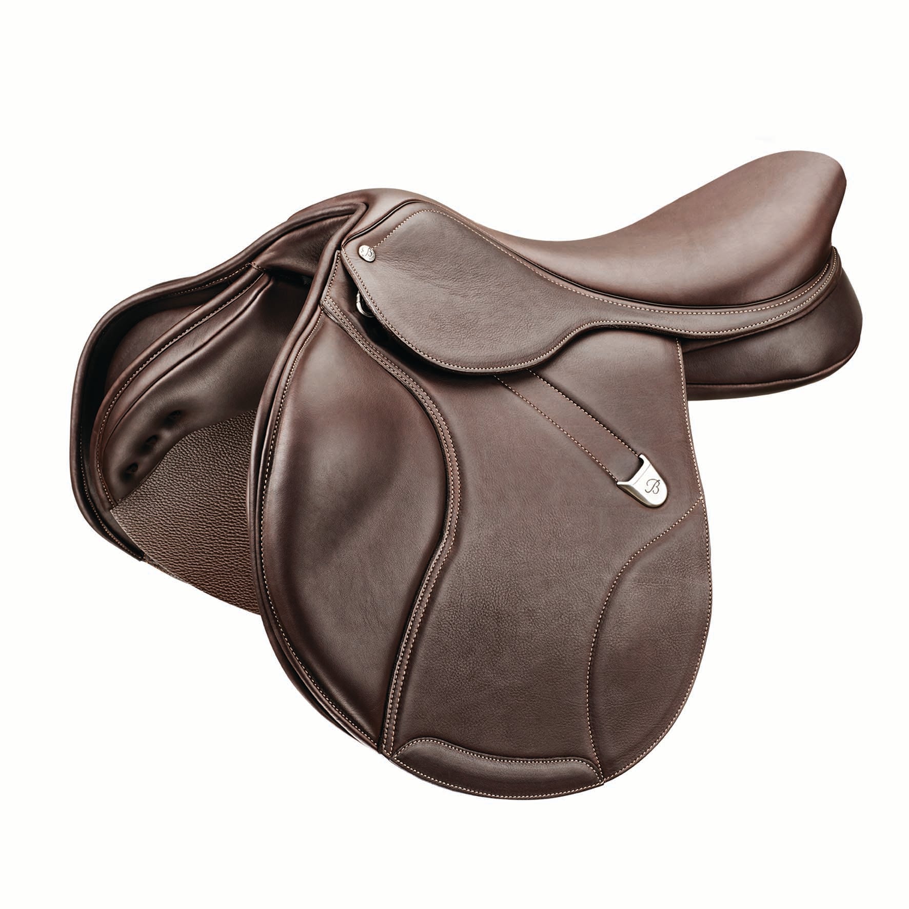 Bates Elevation+ estesatula, flättärimalli. Satula on saatavilla vahvalla Opulence-tuplanahalla tai grippaavalla Luxe leather vasikannahalla.