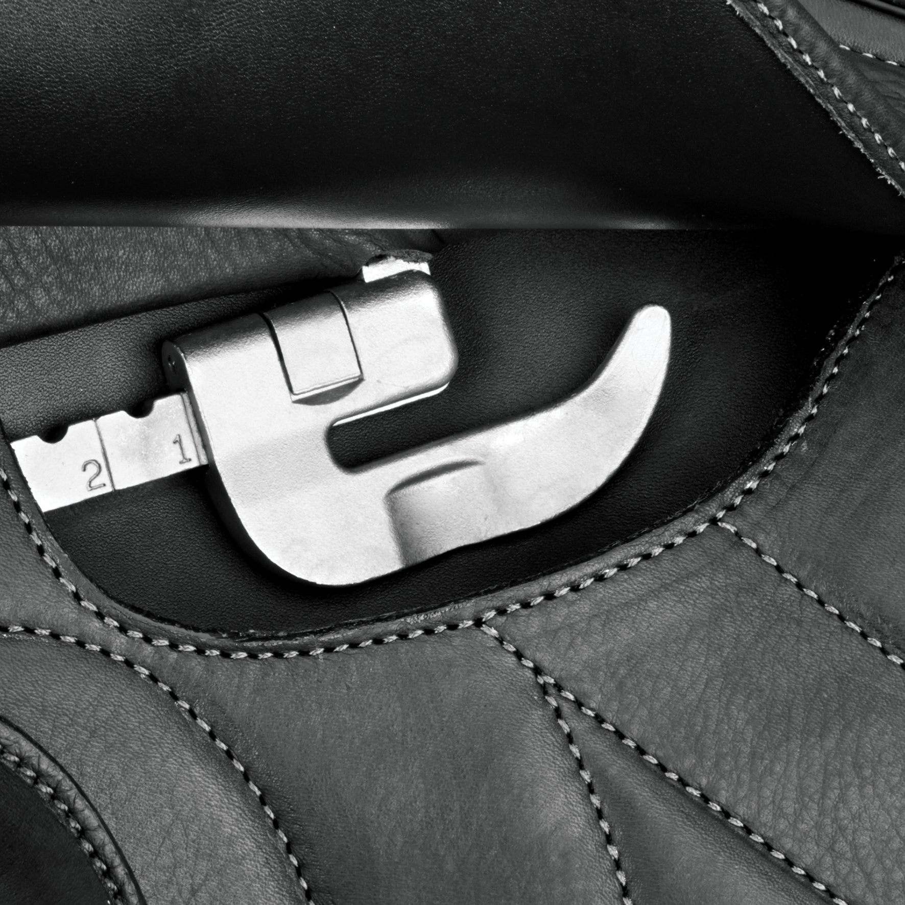 Säädettävää ergonomista jalustinhihnan paikkaa voidaan helposti säätää nostamalla lukitus ja liu’uttamalla rauta haluttuun kohtaan, ratsastajan yksilöllisen asennon ja kehon mukaan.