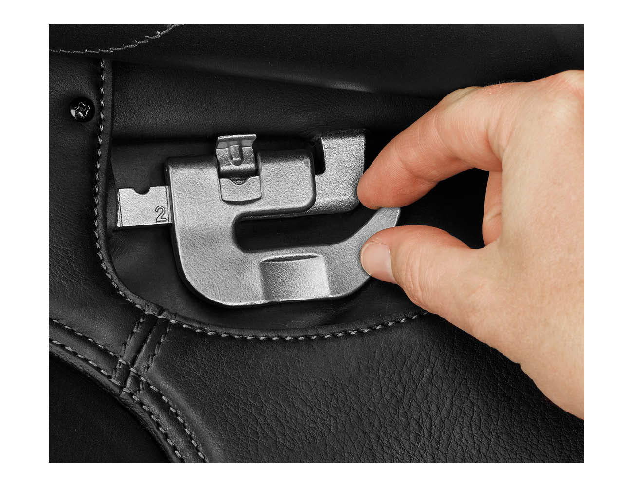 Erittäin kapea istuin, joka tarjoaa juuri sopivasti tukea ja jossa todella pääset lähemmäs hevostasi. Siirrettävien jalustinhihnanpaikan ja polvitukien ansiosta ratsastajalle löydetään oikea, luonnollinen asento.