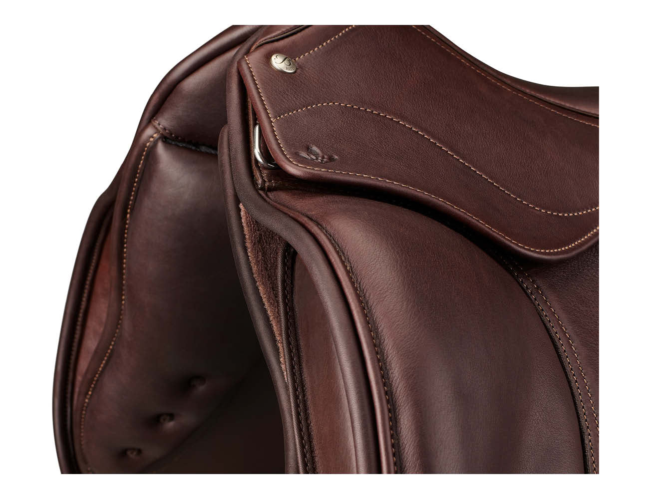 Satulassa on vahva Elastifex-runko, jossa aavistus lateraalista joustoa. Laadukas Luxe Leather-vasikannahka tarjoaa erinomaisen pidon ratsastajalle. Satulassa on siirrettävät ja säädettävät vastinhihnat - juuri hevosesi tarpeisiin. Myös kahteen eri kohtaan siirrettävissä oleva siiven vastinhihna, luo monoflap-maisen tunteen. Aseta tämä hihna optimaalisesti niin, että se sijoittuu keskelle satulavyön kiinnityspisteiden väliin – täydellistä istuvuutta varten.