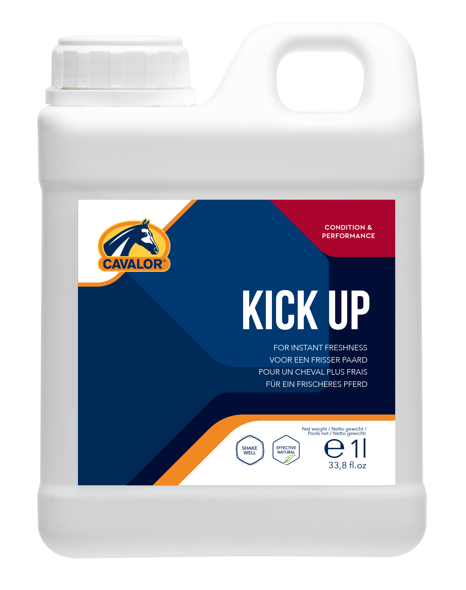 Cavalor Kick Up tuo elinvoimaa hevosille, joilla on alhainen energiataso ja heikko suorituskyky. Tuote sisältää ravintoaineita, kuten kasviuutteita, Bvitamiineja ja koliinia, jotka antavat lisäenergiaa, tukevat elimistön toimintoja ja edistävät palautumista. Tuloksena aktiivisempi ja yhteistyöhaluisempi hevonen. Tulokset näkyvät nopeasti - jo yhden päivän käytön jälkeen.