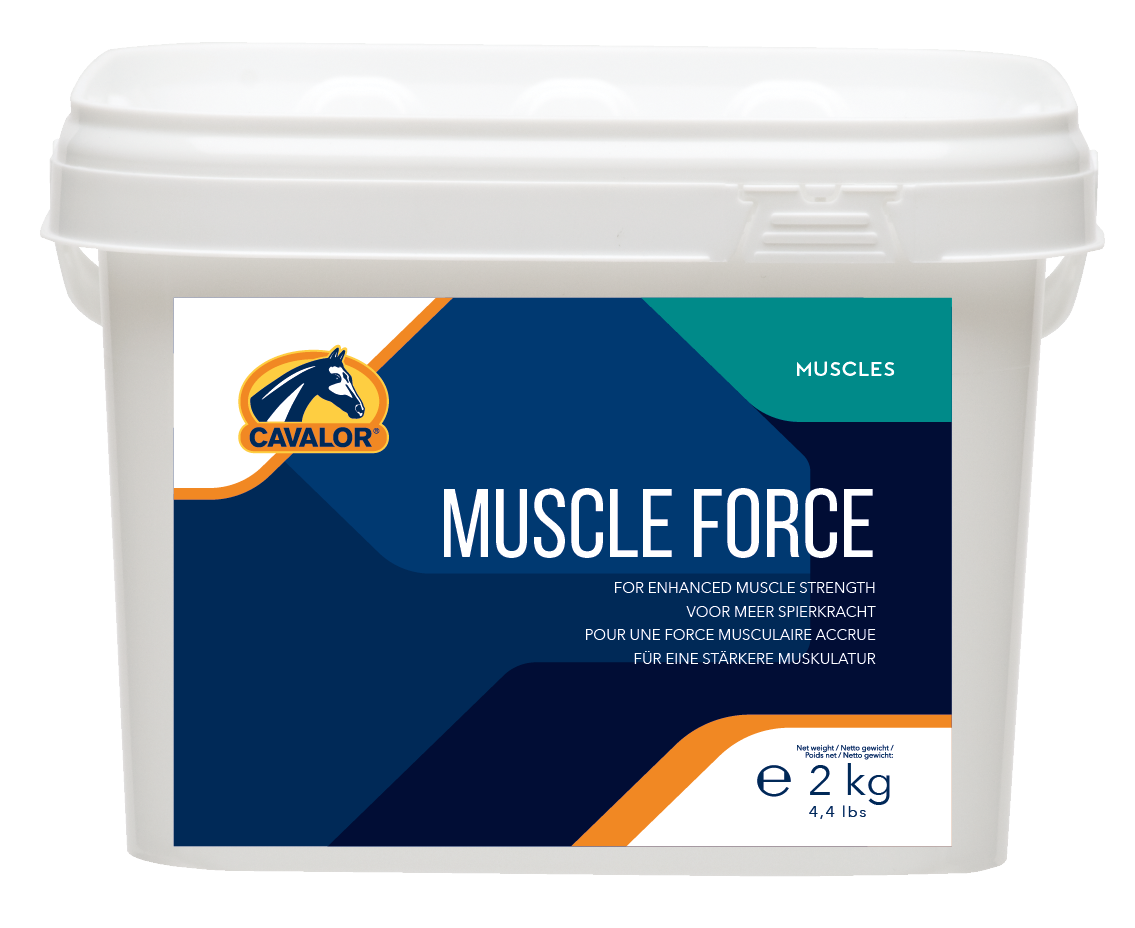 Usein hevoset, joilla on vaikeuksia rakentaa lihaksistoa, ovat hieman alipainoisia. Ilman riittävää massaa hevonen ei pysty rakentamaan lihaksia. Cavalor Muscle Force on 100% luonnollinen ratkaisu, joka harjoittelun ohessa tukee lihasten ja voiman pitkäkestoista kehitystä. Tuote sisältää lihasten proteiinisyntesiin tarvittavia välttämättömiä aminohappoja oikeassa suhteessa, sekä aktiivisia ja inaktiivisia hiivoja ja erityisen yrttiyhdistelmän, joka tulee lihassolujen jakautumista. Lisääntynyt lihassolujen muodostuminen ja vähentynyt lihassolujen hajoaminen takaavat pitkäaikaiset tulokset.