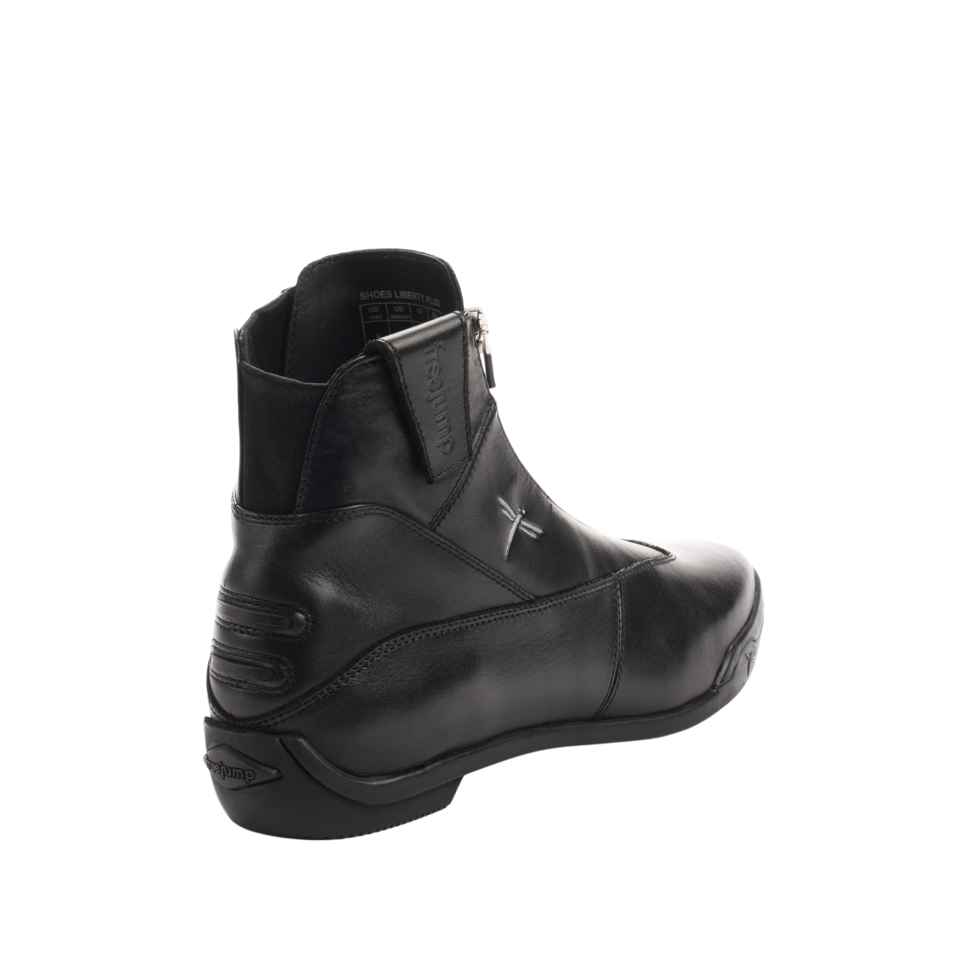 LIBERTY+-ratsastuskengät on valmistettu fullgrain-nahasta, jossa on kaksinkertaiset tikkaukset kestävyyden parantamiseksi. Ruiskutettu kumipohja on FEI-määräysten mukainen korotetun kantapään ansiosta. Freejump Riding Control™ -pohjallinen, joka on suunniteltu yhteistyössä urheiluun tarkoitettujen ortopedisten pohjallisten asiantuntija Sidas®:n kanssa, takaa optimaalisen paineen jakautumisen ja erinomaisen kaarituen. Kantapäässä on myös nonslip- mikrokuitumateriaali. Kengissä on 2 eri paikkaa kannuksille, jotka on vahvistettu kaksinkertaisilla ompeleilla.