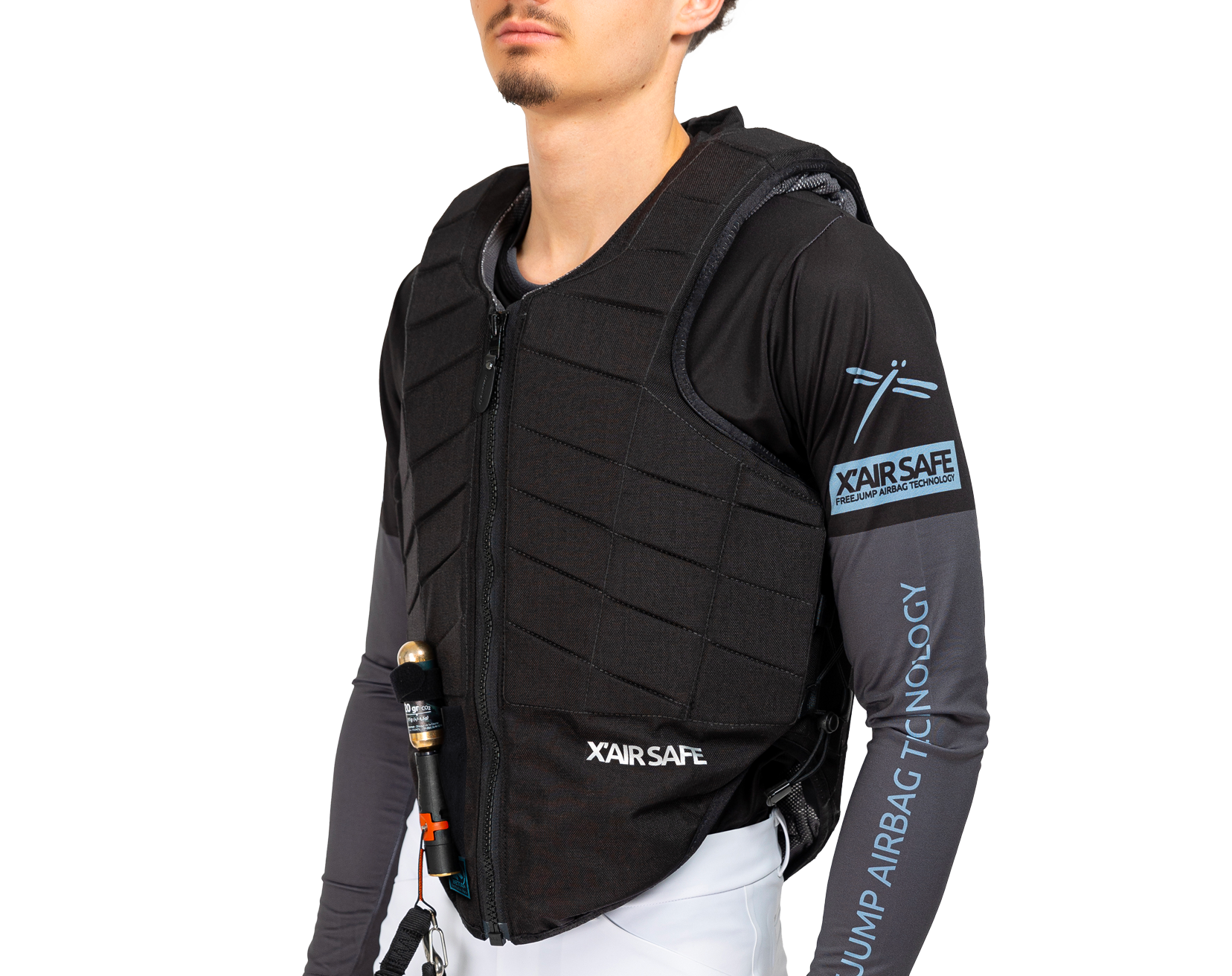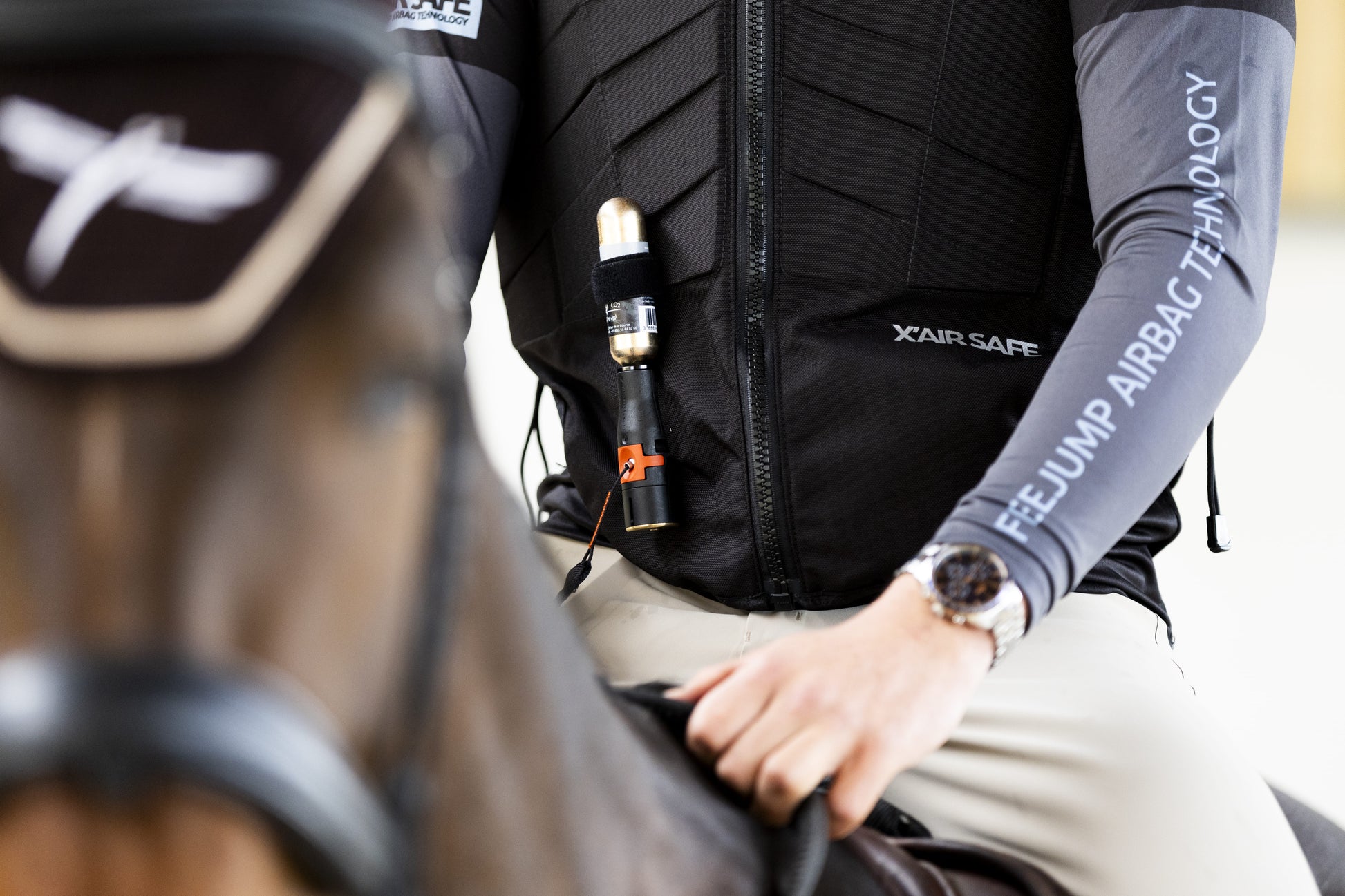 X'AIR SAFE on varustettu erittäin nopealla kaasugeneraattorilla ja patentoidulla kiinnitysnauhalla, jotka takaavat erityisen turvallisuuden. Täysi täyttymisnopeus on 89 metriä sekunnissa koossa M, mikä varmistaa luotettavan käytön hevosen korkeudesta riippumatta. Ranskassa FREEJUMPin työpajoissa koottu X'AIR SAFE takaa erinomaisen laadun.